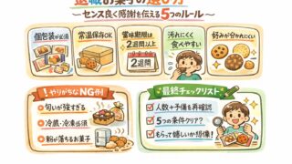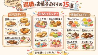 この記事では、退職の挨拶で渡すお菓子の選び方を「失礼なく・時短で・好印象」の視点で整理しました。引き継ぎや挨拶回りでバタバタしているときに、お菓子選びで立ち止まるのって本当にしんどいですよね。でも最後だからこそ、「ちゃんとしてる」「わかって...