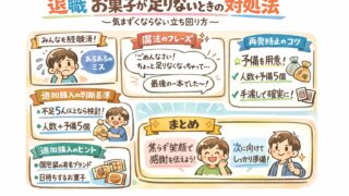 退職 お菓子 足りないと気づいた瞬間、頭が真っ白になりますよね。「渡せなかった人がいたらどうしよう」「最後の印象が悪くなったら困る」そんな不安でいっぱいになっていませんか。退職時のお菓子不足は実はよくある出来事で、大切なのは気まずさを最小限...